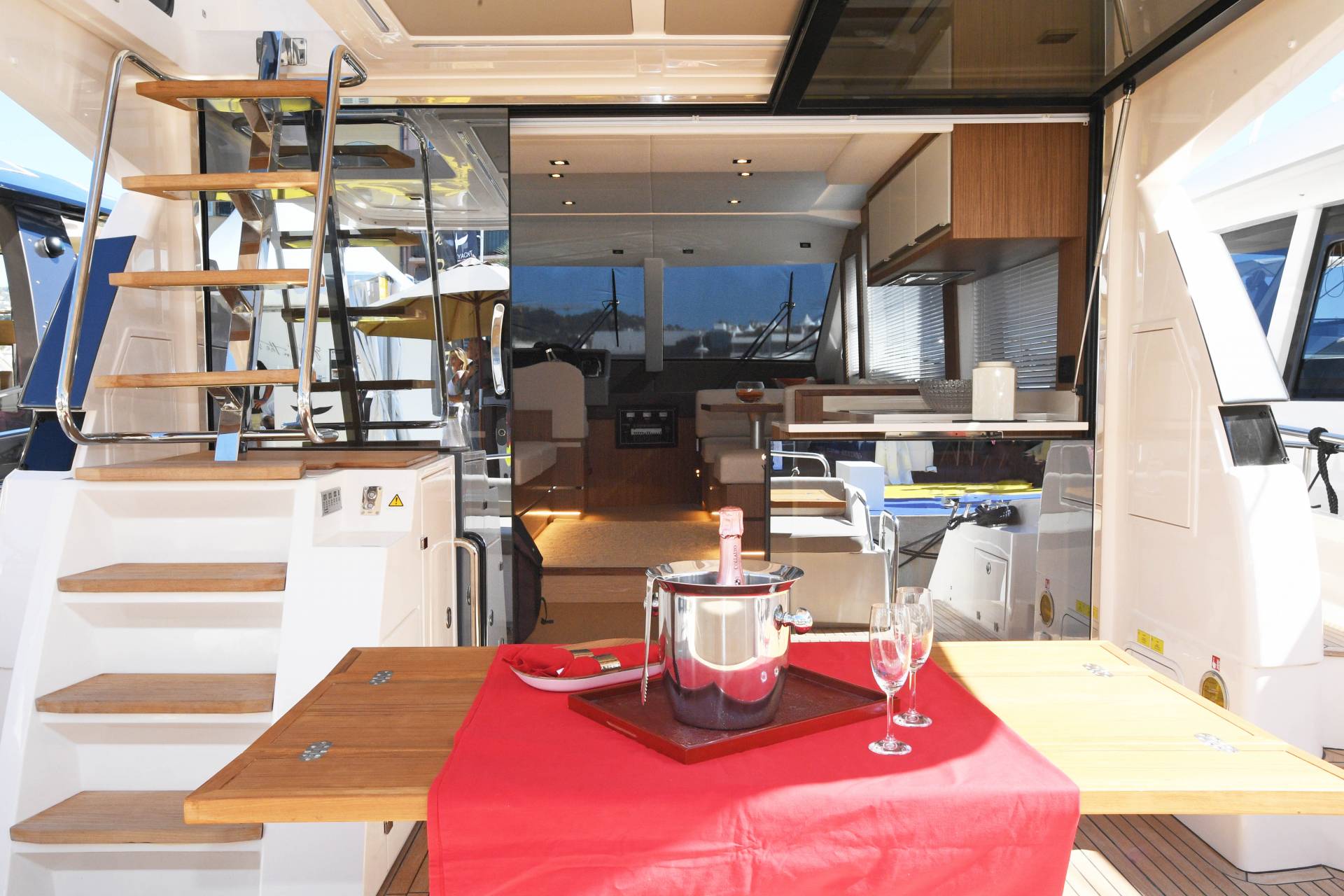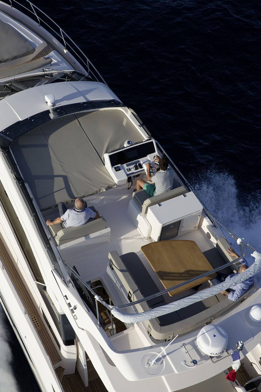The F520’s exterior merges modern lines with spacious design, providing easy movement, wide views, and outdoor living that defines freedom at sea.