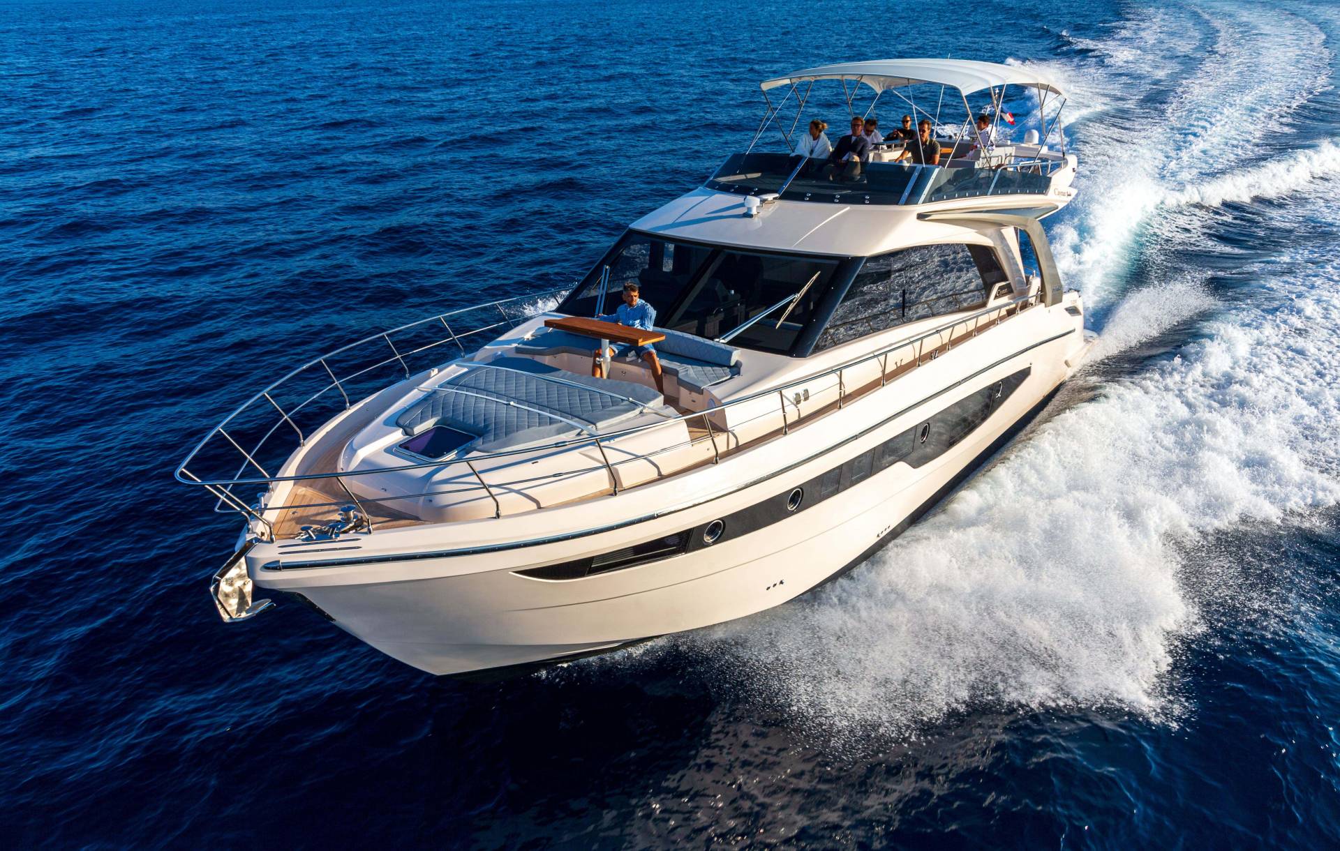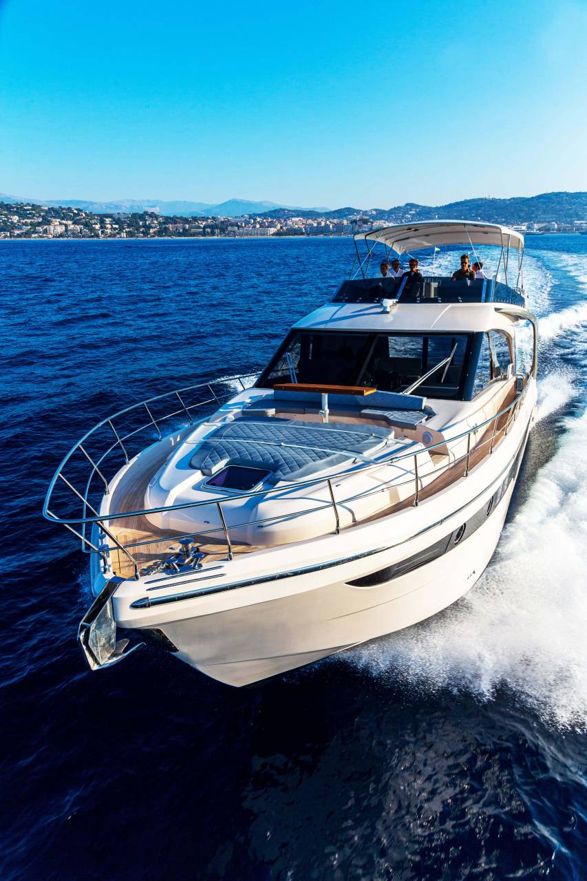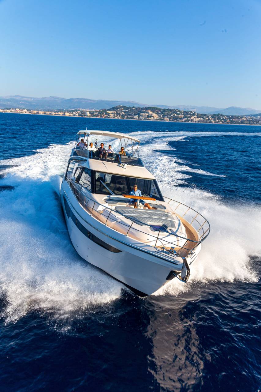 Equipped with advanced propulsion and automation, the F580 Flybridge makes yachting effortless.
