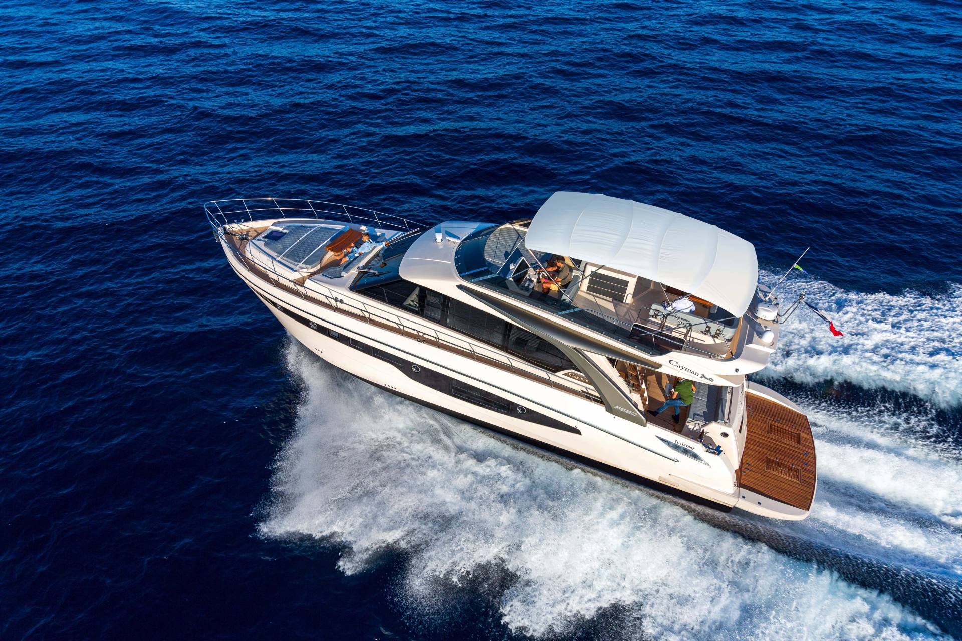 An expression of elegance and capability, the Cayman F580 Flybridge blends Italian sophistication with modern functionality—crafted for those who desire long-range comfort and panoramic cruising freedom.