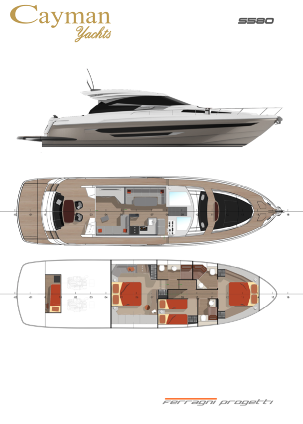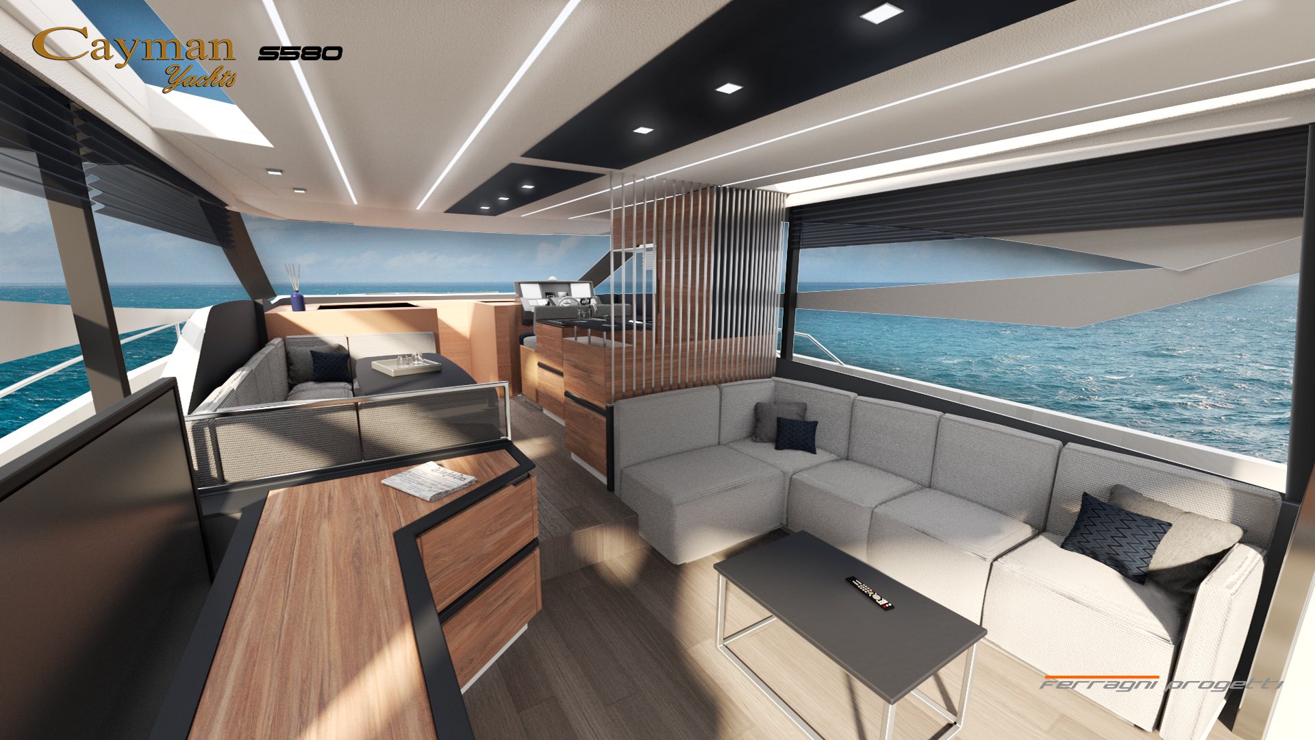 A bold evolution of Cayman’s sport line, the S580 combines sleek geometry with elevated functionality — engineered for owners seeking performance, comfort, and contemporary Italian style in perfect harmony.